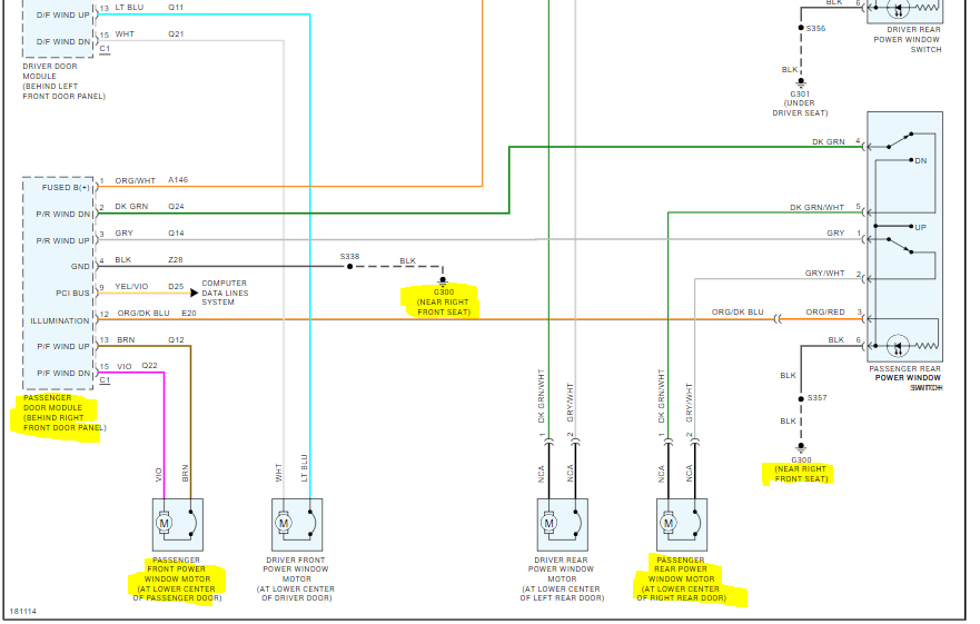 Yesterday, my rear passenger window would go down, but not back up. Drivers switch also will not make it go up. Only down. There is a clicking in the passenger door when i try. Took door panels off on passenger front and back. Getting power to the switch of both doors, actuator cable is intact. I was able to connect 12v power to the window motor and raise the window. Motor seems fine. Today, the window will not go up or down at the door or at the driver's switch. Still hear clicking at passenger front door when attempting to raise window, but nothing from the rear passenger door.