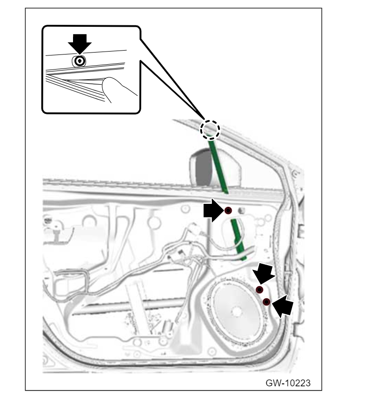 Rear passenger window scissor lift is damaged