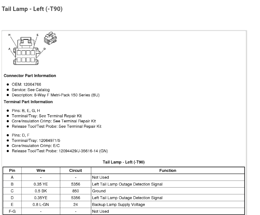 I have done a quick check of the ground wires directly coming from the taillight plug connector and the wires coming from the trunk lid as that is a common place for broken ground wires. I assume since there is only on plug to the rear tail lights and it’s not the LEDs themselves and there is power going to the connector that the issue must be a bad ground or broken ground somewhere I just don’t have the information I need to check correctly elsewhere.