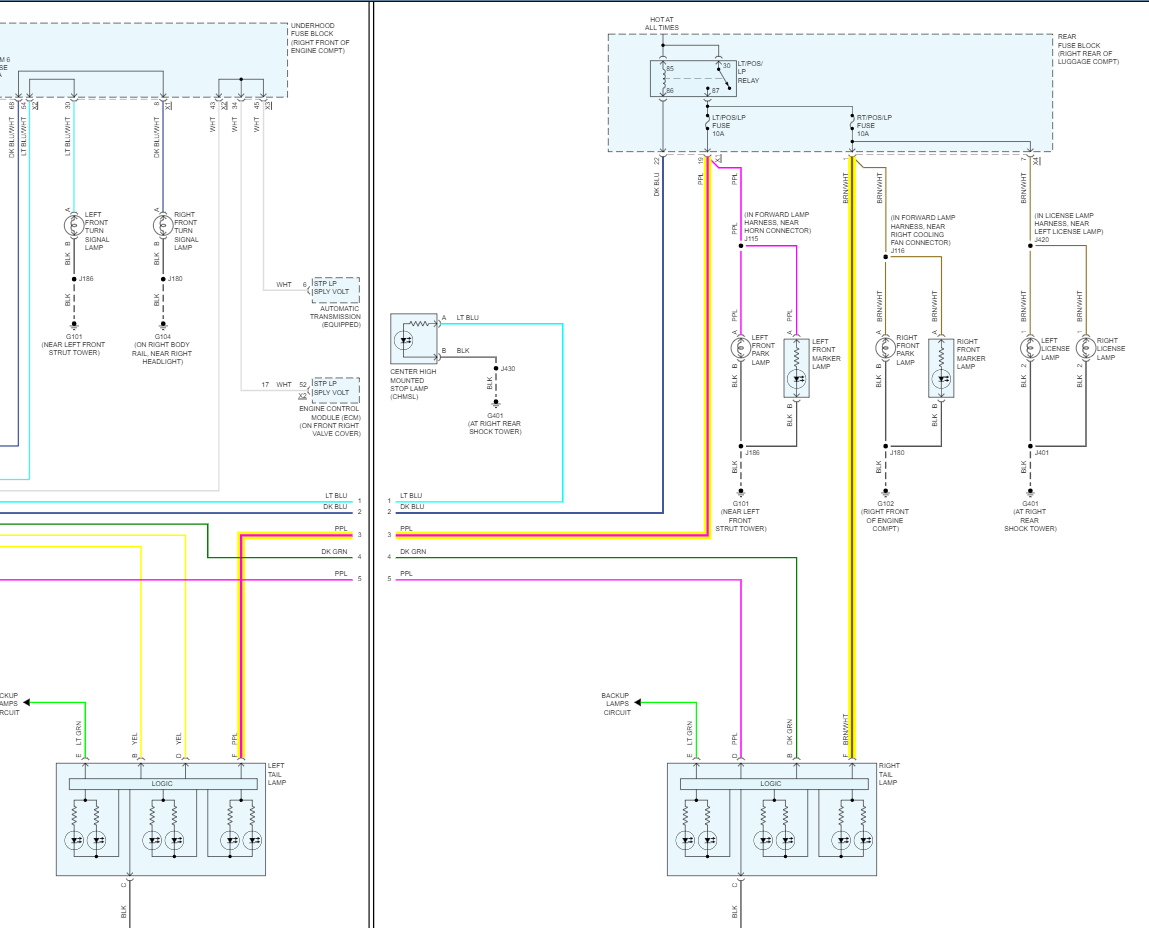 I have the car listed above cts4. I am having trouble fixing the problem with the rear running lights not working on the right and left side. The brake lights work, the reverse lights work, the turn signals work. I have checked the taillight plug connector it is getting power constant power on pen one bottom left and power to the third pin over on the bottom which is the brake light power when brake is pressed in passenger side connector same with driver side, I did the same checks on both sides. I have manually tested the led taillights to check if the taillight LEDs were not working. They all light up as normal. I have checked all the fuses and relays as best I could to the information, I could find online that seemed to pertain to the rear taillights. I am not too familiar with Cadillac I will admit I have way more experience with Japanese car brands. But the basics are the basics.