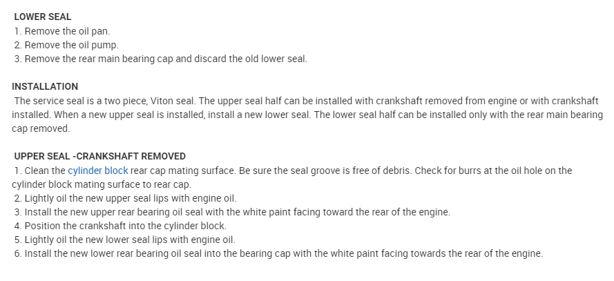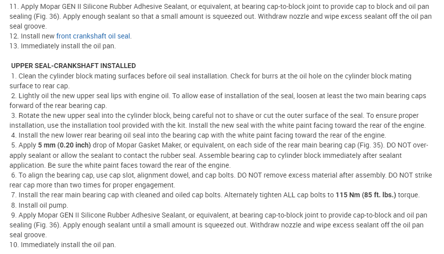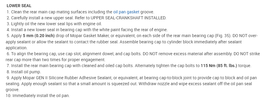 I'm replacing the 2 rear main seals. I did it 2 years ago but somehow a leak again. I wanted to know if offsetting the seals 3/8 of an inch is a better way to do it. With black RTV at ends at where bearing bolts up at to.