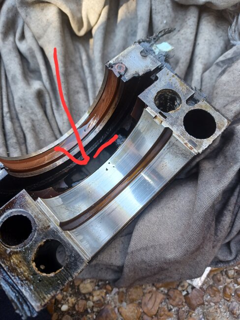 The thrust bearings are used to control axial (side-to-side) movement or thrust along the length of the crankshaft. The primary function of thrust bearings is to support the axial loads generated by the engine's operation. In other words, it prevents forward and backward movement of the crankshaft.