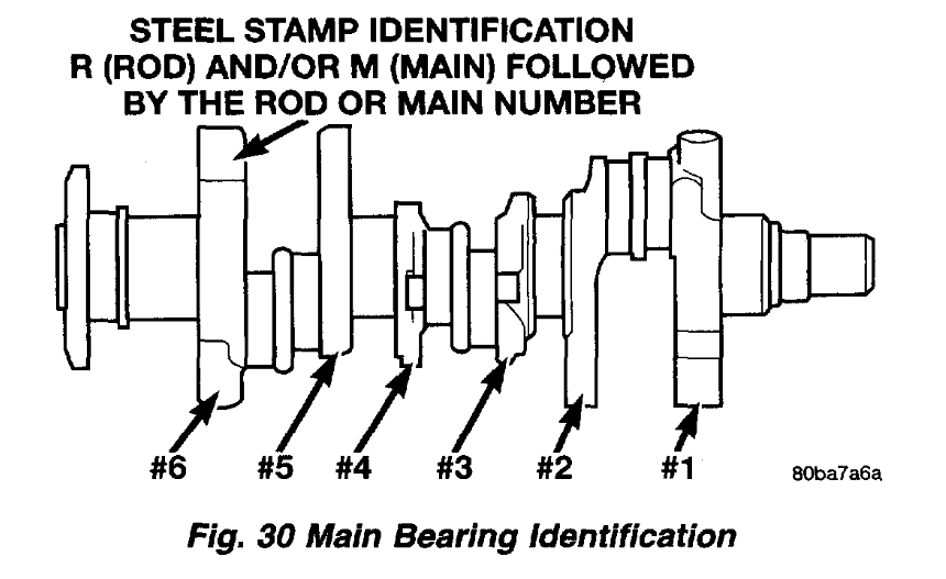 On this engine, the upper and lower No. 2 bearing halves are flanged to carry the crankshaft thrust loads. They are not interchangeable with any other bearing.