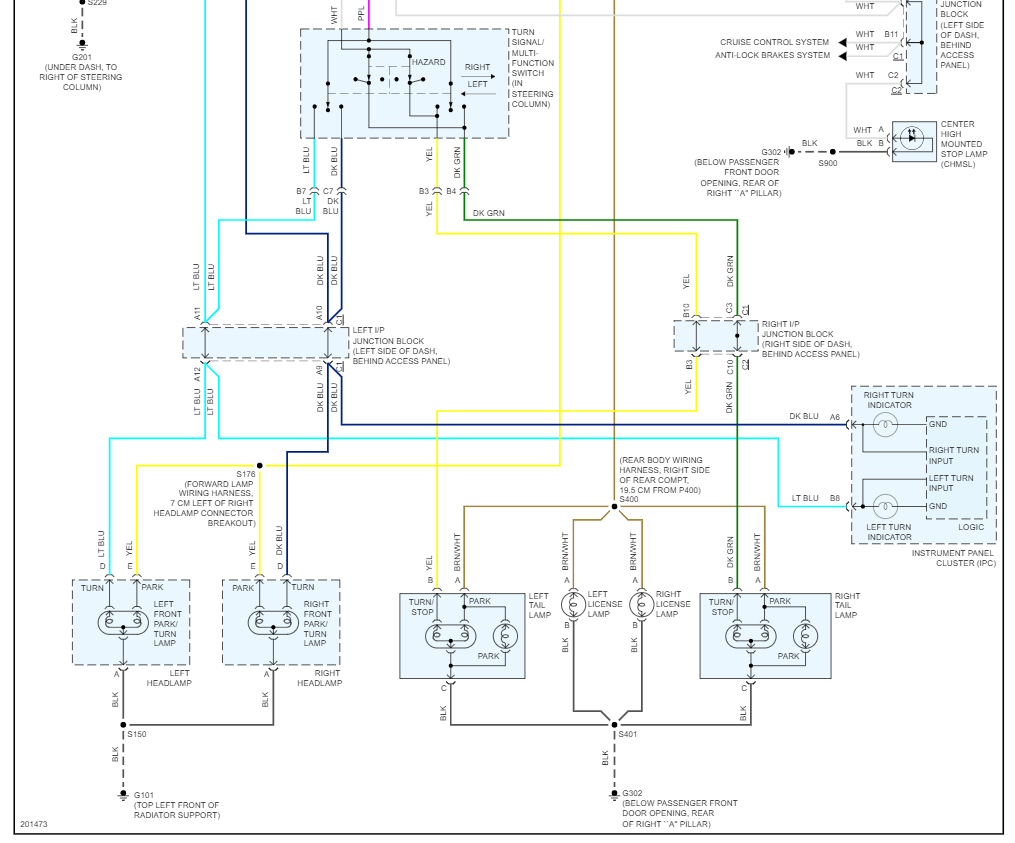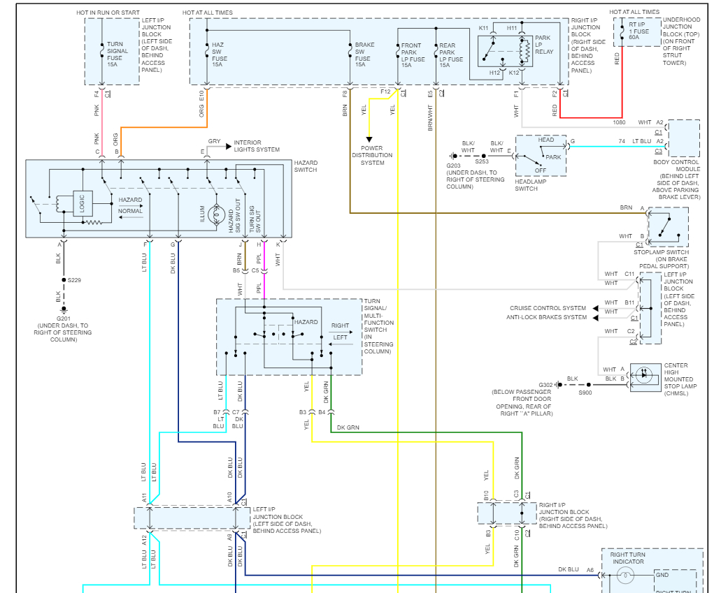 I have changed the ignition switch, the hazard switch, and the brake light switch and also the light switch and they are still on, initially when this happened I noticed that they were on after I shut the car off and it drained the battery, it wouldn't start and my gas gauge said empty and my lights were flashing no fuel and security and service vehicle, (not the check engine light) in addition the starter didn't click when I tried to jump start it. I had almost a full tank of gas, so I knew the fuel pump and starter didn't fail at the same time. I was able to touch the battery terminals together and drain the capacitors in the computer and I was able to clear it out and it restarted and ran normal, except the tail lights don't shut off when I turn the car off... they are even on during the day... what is confusing is when I brake, the light gets brighter... so I'm thinking the brake switch works, even thou I replaced it, so it's like the tail lights... intensity is on all the time.. The confusing part is the center, cyclops brake light is on too. Any clue what this could be? A bad ground? I could see if they didn't turn on. but not shutting off? Do you think it could be a bad circuit in the body control module...I'm suspecting it might be, because of the security issues I initially had, before I cleared the computer. Could someone scan the car and find the problem?