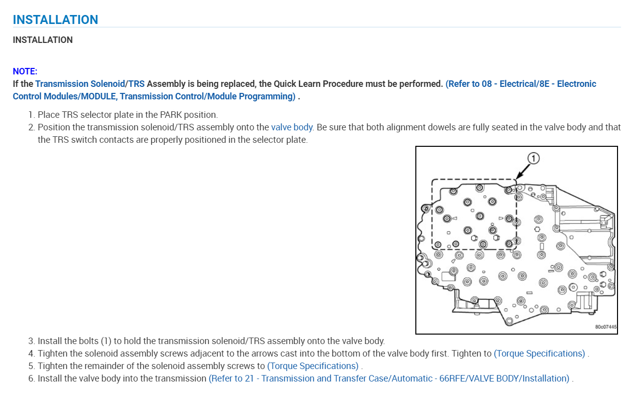 This program allows the electronic transmission system to recalibrate itself. This will provide the proper transmission operation. The quick learn procedure should be performed if any of the following procedures are performed: