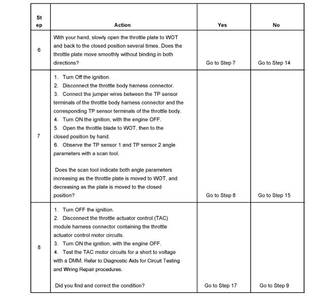 7. If the TP indicated angle does not follow the movement of the throttle blade and no TP sensor DTCs are set, there is a mechanical condition with the throttle shaft or the TP sensor.