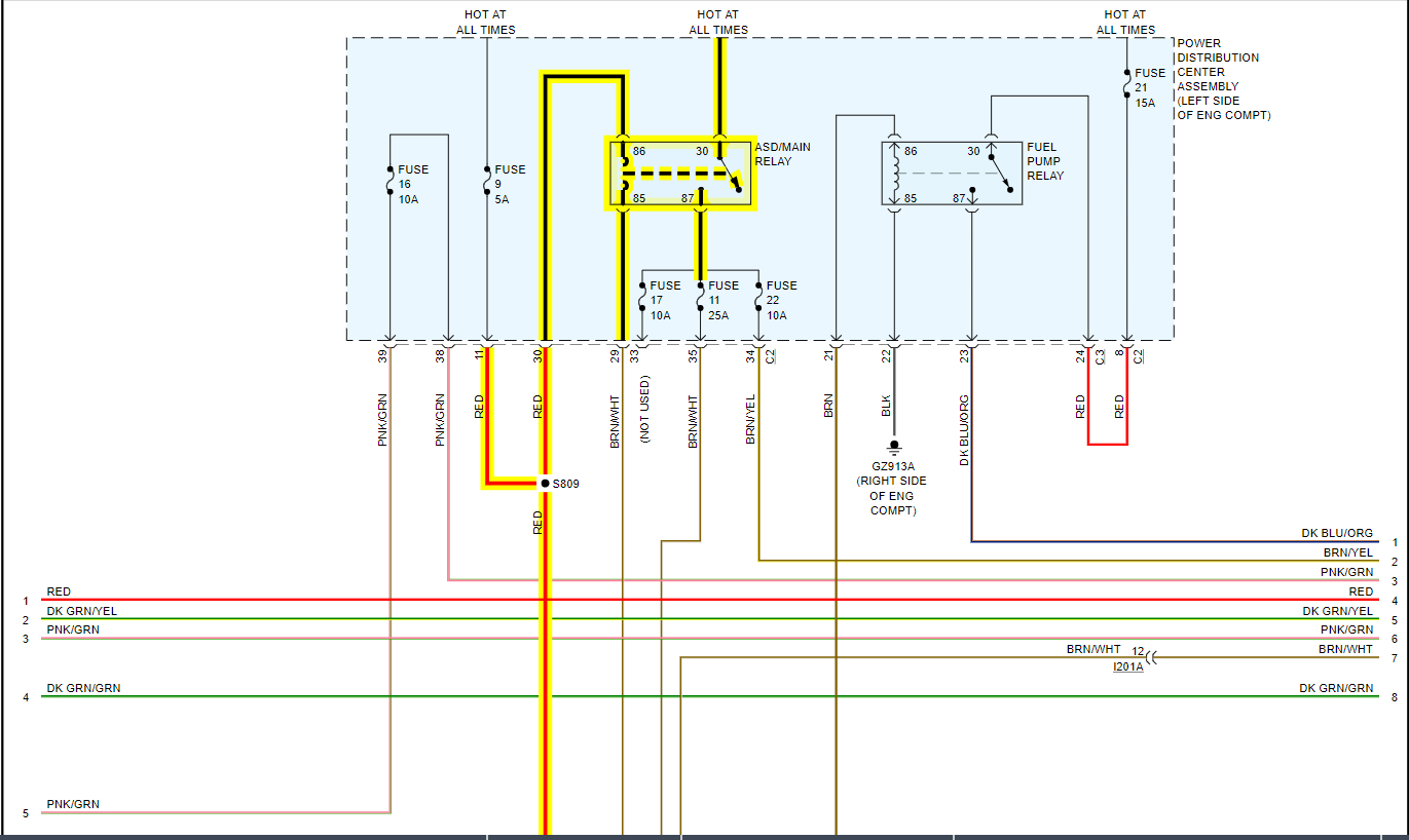does anybody know where auto shut down relay is located? is it inside the driver side fender weld?