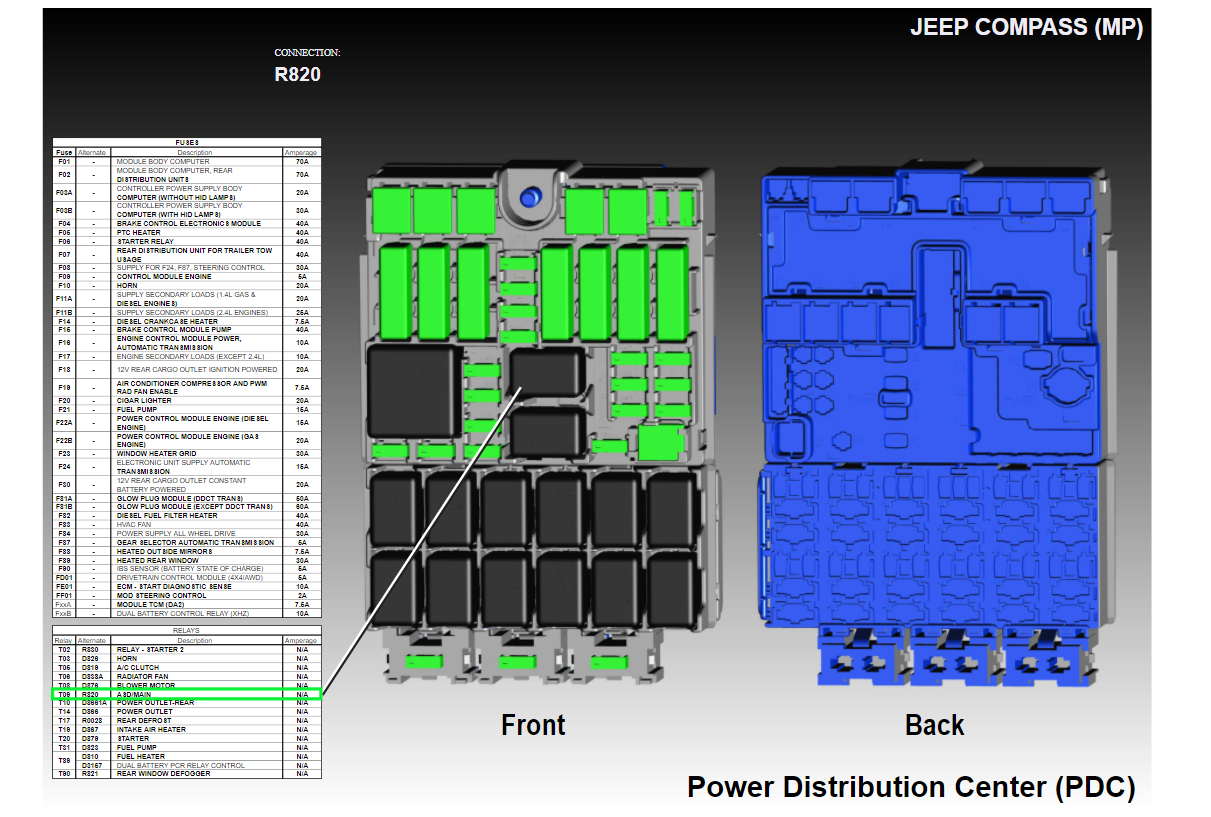 It is inside the power center (under the hood fuse panel) mounted on the circuit board if the information is correct. Not a replaceable part without taking the power center apart. However there is also the power relay that does a similar job and it is a replaceable item inside the relay box.