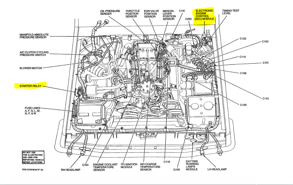 I attached a pic below showing starter relay and EEC module locations. The EEC power relay will not prevent the starter from engaging but will stop fuel.
