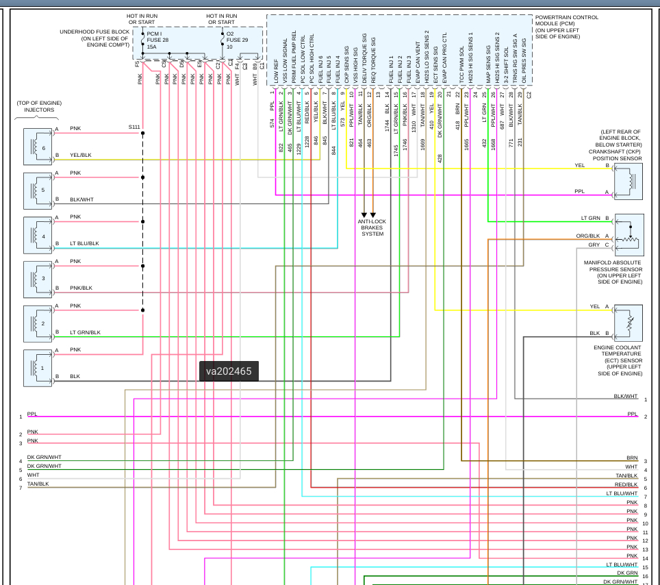 I have also included the wiring diagrams for the headlights, stereo, and power-train management[engine and transmission and computer that runs them] in the diagrams down below. If you would like the wiring diagrams to other systems on your vehicle, please, just ask. You read them like you would a book, from top to bottom and left to right. Please go through these guides and get back to us with what you find out, or if you have any other questions, or need some clarification about any thing. We are here to help.