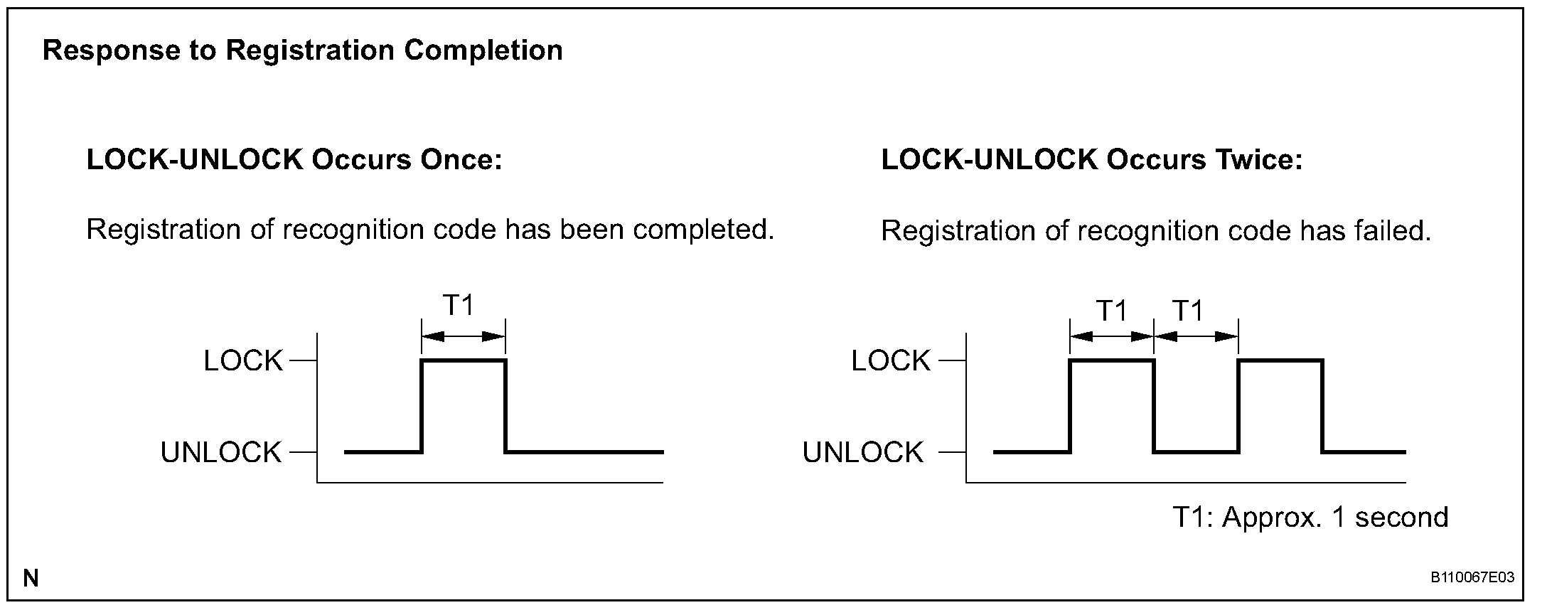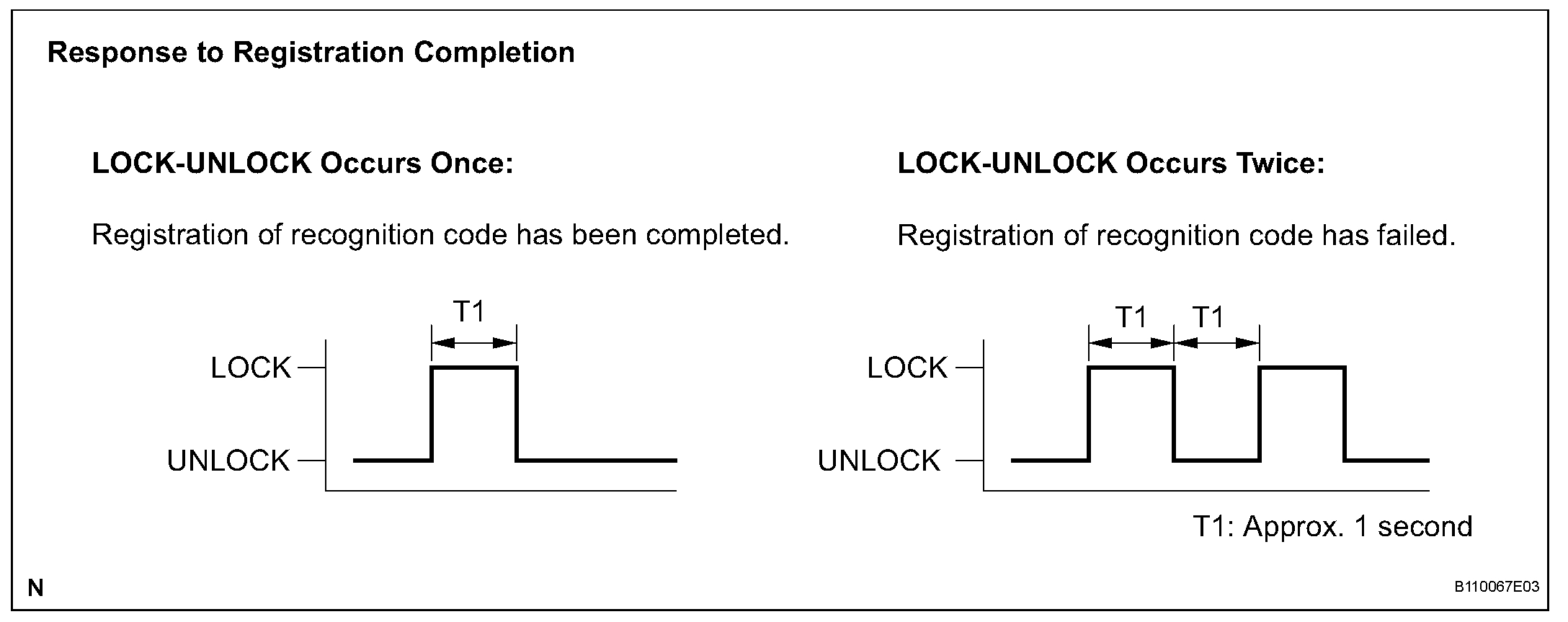 HINT: If the LOCK-UNLOCK operation is performed twice, registration of the recognition code has failed. Perform registration procedures from the beginning once again.