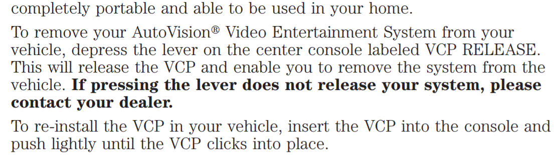 My van came with a full multimedia system including a Video Cassette Player. Although originally designed to be removable, it is actually locked in place to prevent theft.