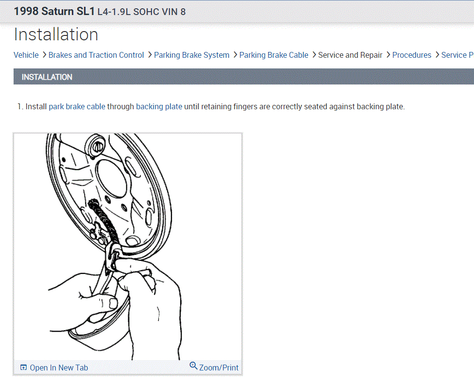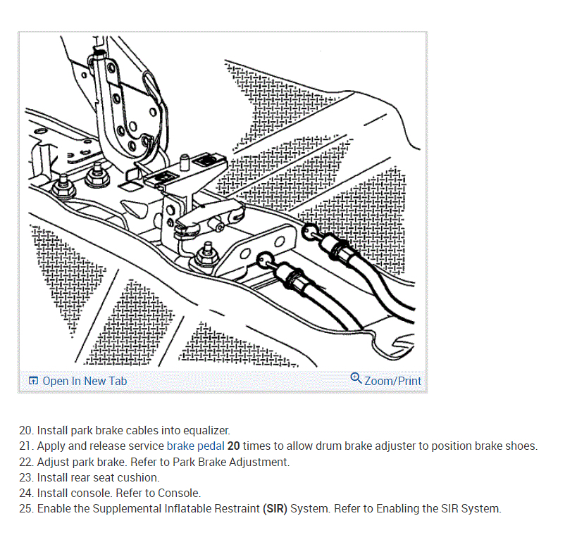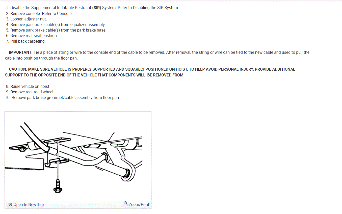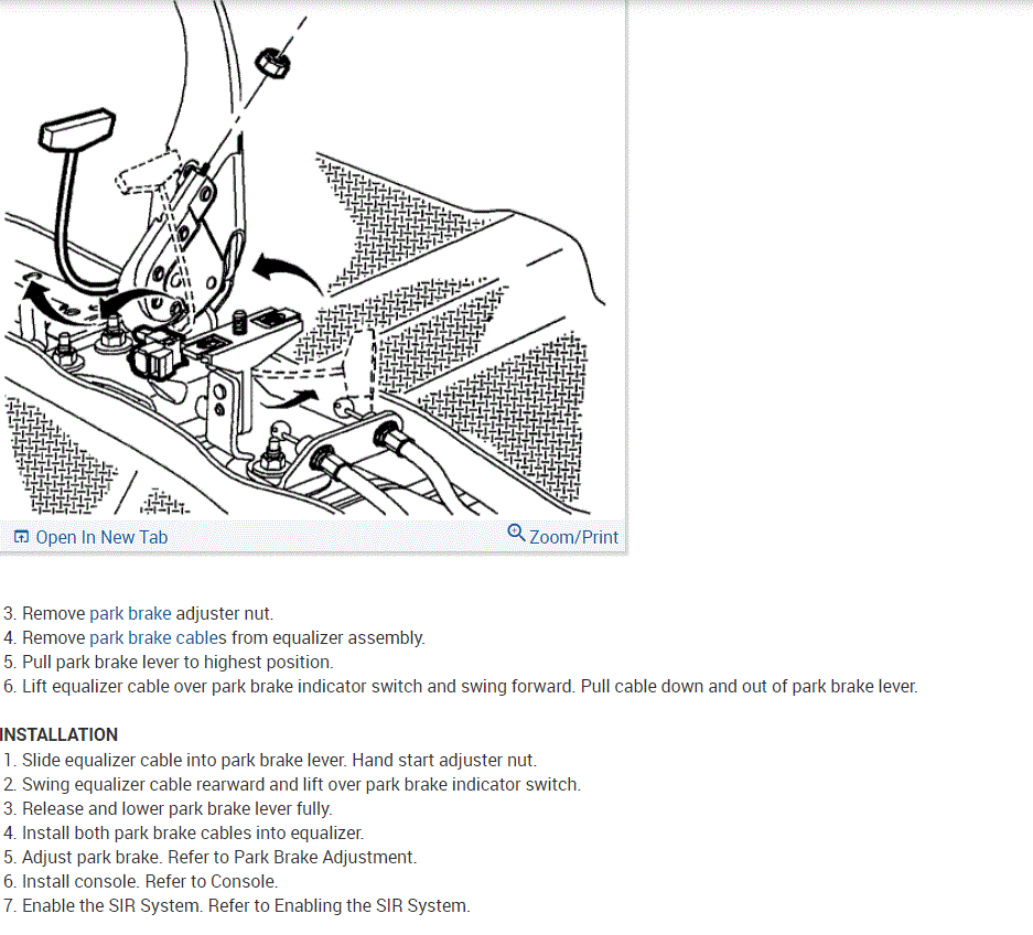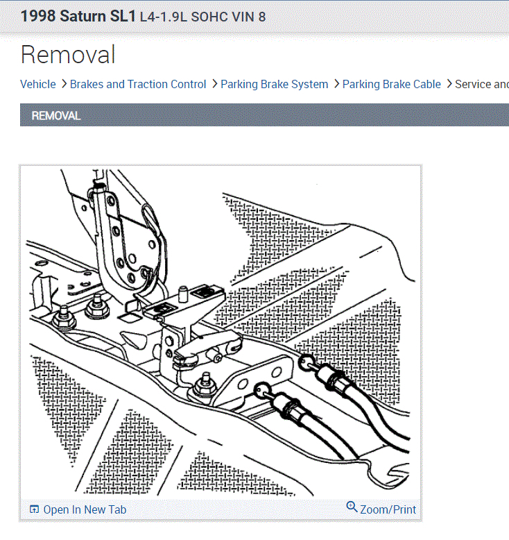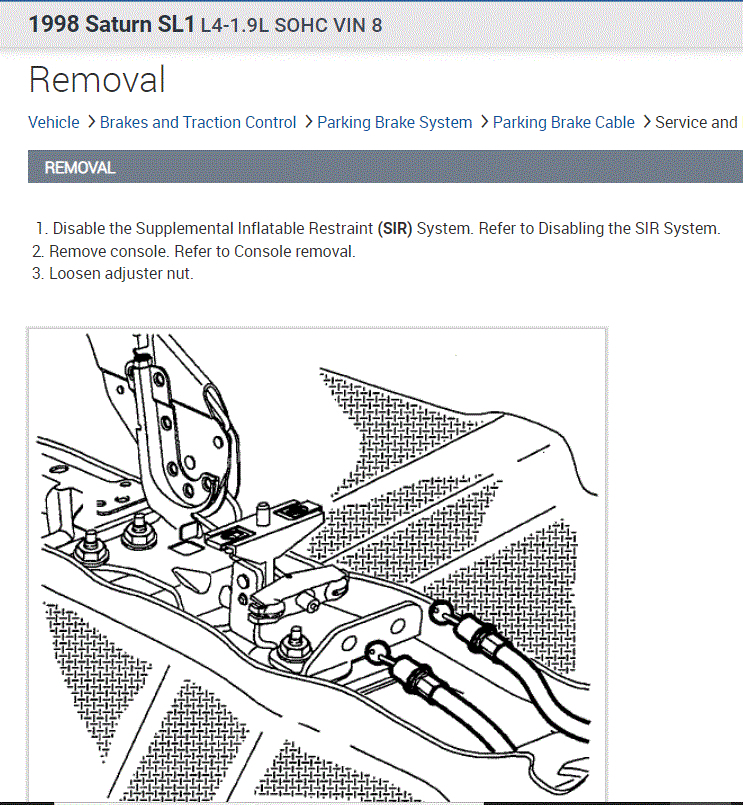 I'm not sure if your vehicle has rear drum or rear disc brakes. The procedure for cable replacement is different. However, I will add the directions for both. If you look at the pics I attached below, they contain the directions and pictures related to the procedures. Note that there are different cables.
