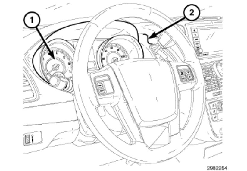 Disable the airbag system before attempting any steering wheel, steering column or instrument panel component diagnosis or service. Disconnect and isolate the negative battery (ground) cable, then wait two minutes for the airbag system capacitor to discharge before performing further diagnosis or service. This is the only sure way to disable the airbag system. Failure to follow these instructions may result in accidental airbag deployment and possible serious or fatal injury.