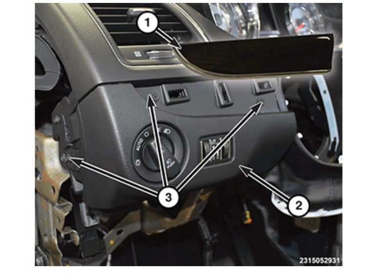 Remove one screw (3) located below the headlamp switch bezel.
