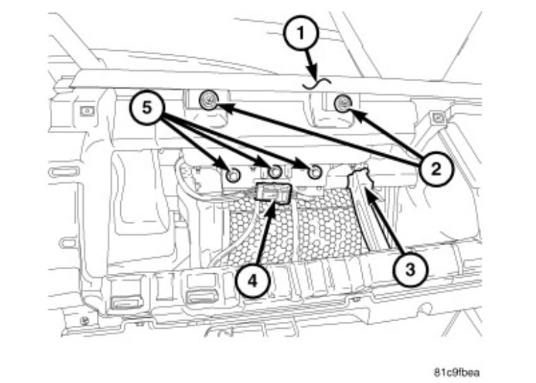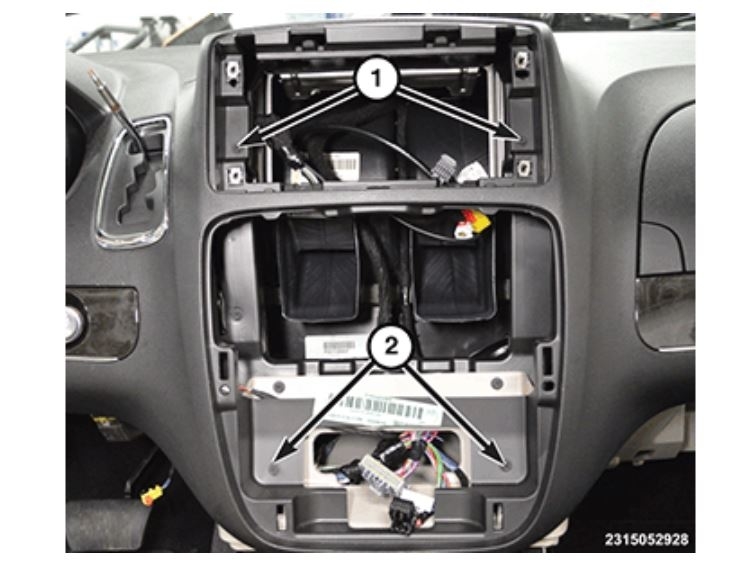 Remove two screws (2) located in the instrument panel center bezel opening.