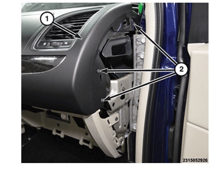 Remove both instrument panel end caps (Refer to 23 - Body/Instrument Panel/CAP, Instrument Panel End/Removal) .