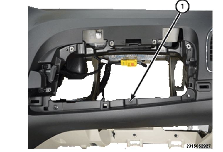Remove one screw (1) located in the upper glove box opening.