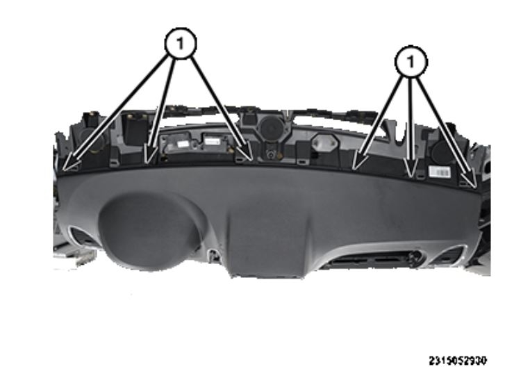 Remove six screws (1) along the top of the instrument panel pad.