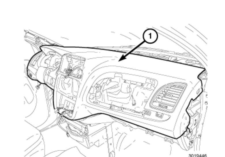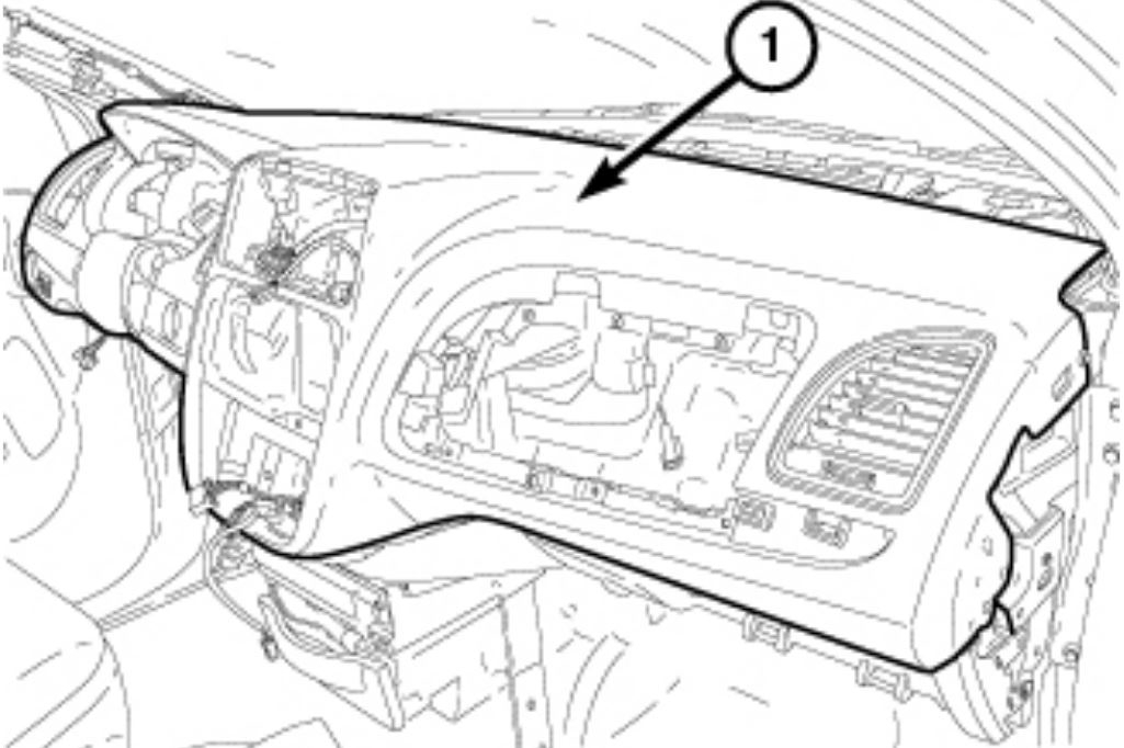 Lift upward and rearward to remove the instrument panel top pad (1) from the vehicle.