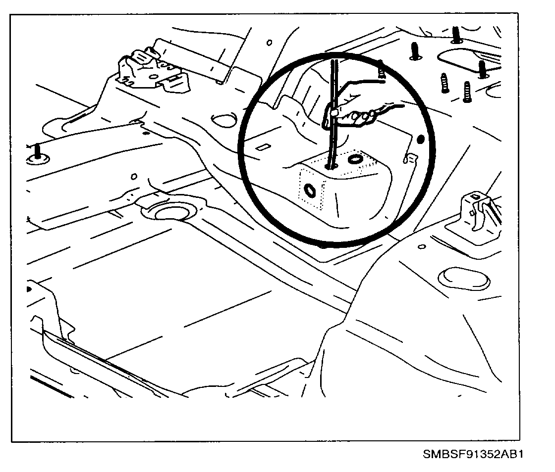 5. Pull the cage nut through the front opening between the floor pan and seat bracket using the wire. Discard the old cage nut.