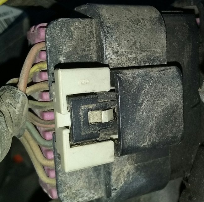 Squeeze the black tab right where the white clip might have been the push it down and pull it up.That's a very common GM car connector.