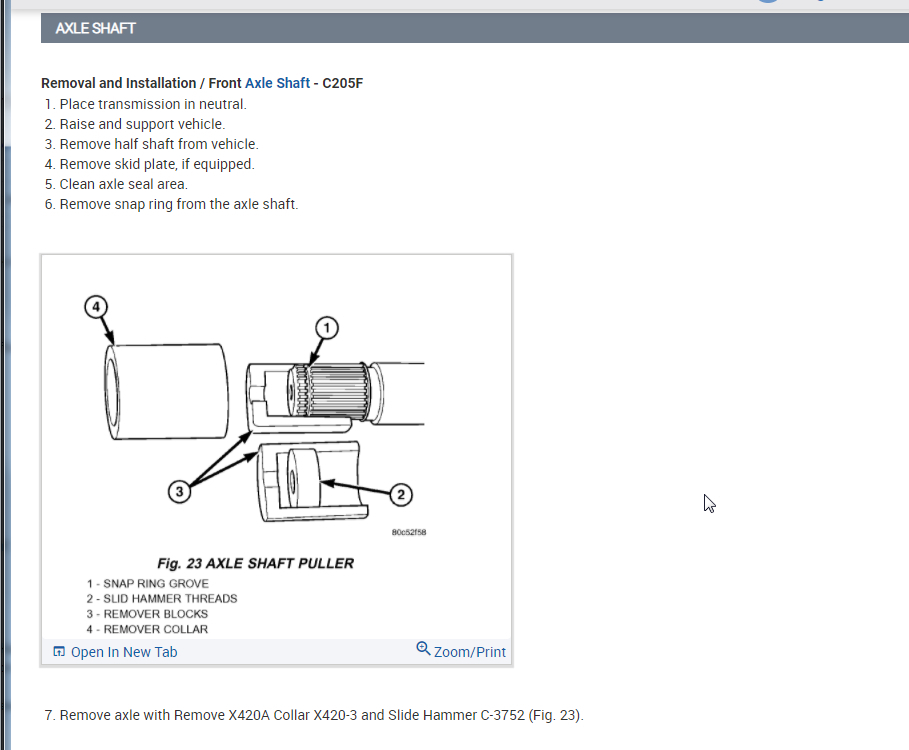 Below is the process from the manual but you can get a slide hammer from most any parts store that has a rental program. Let me know if you can't find one or have questions and we can go from there. Thanks