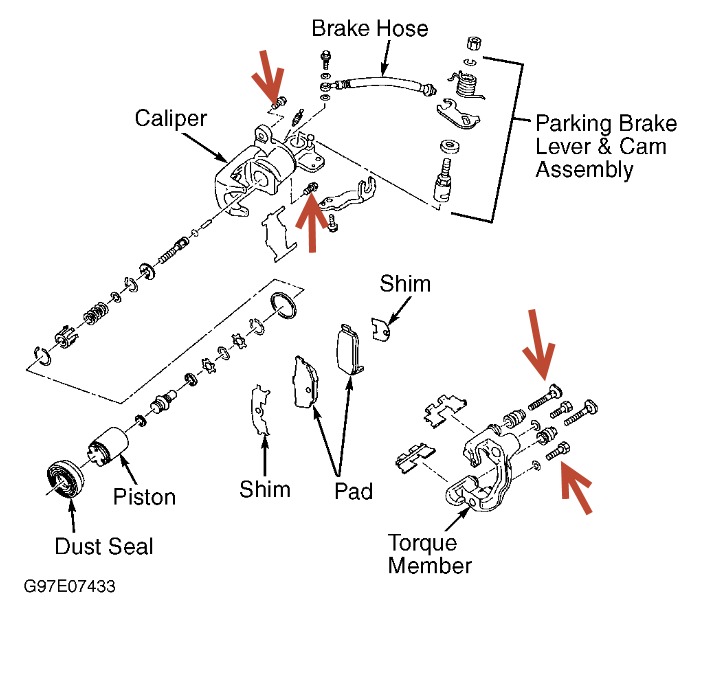 I guess I should have worded this differently. I'm having trouble getting the parking brake line off from the caliper. I have everything else off, but the line that runs to the caliper/spring. What tool(s) do I need to release(?) or to get it off? Thanks.