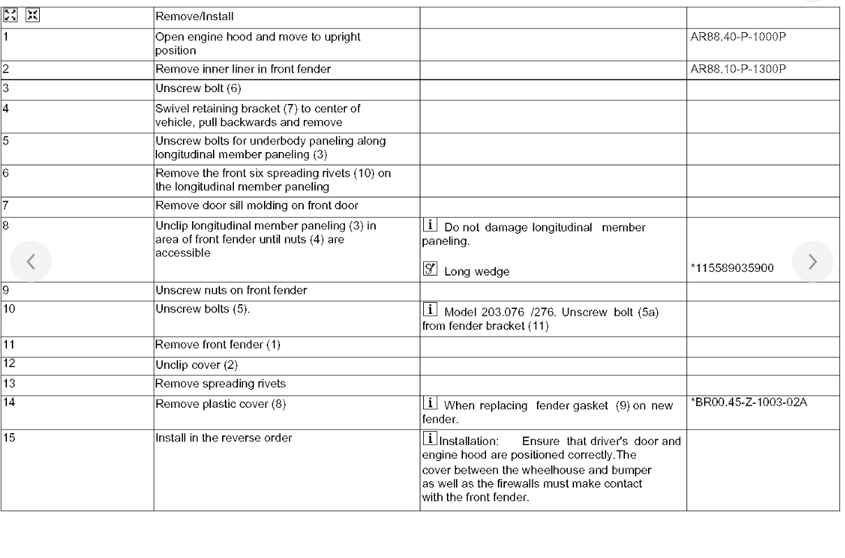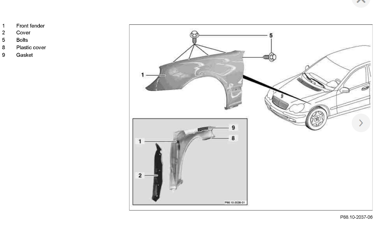 I recently bought the Mercedes' Benz off of someone and the fender is busted up. So, I bought a new one and I want to install it myself. I want to know how could I remove the passenger side fender to install a new one? I enclosed a photo.