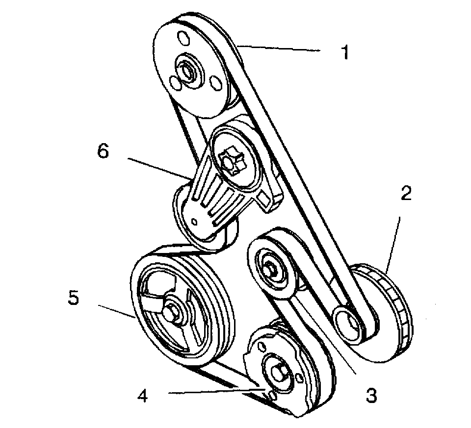 5. Remove the drive belt from the remaining pulleys (2-5).