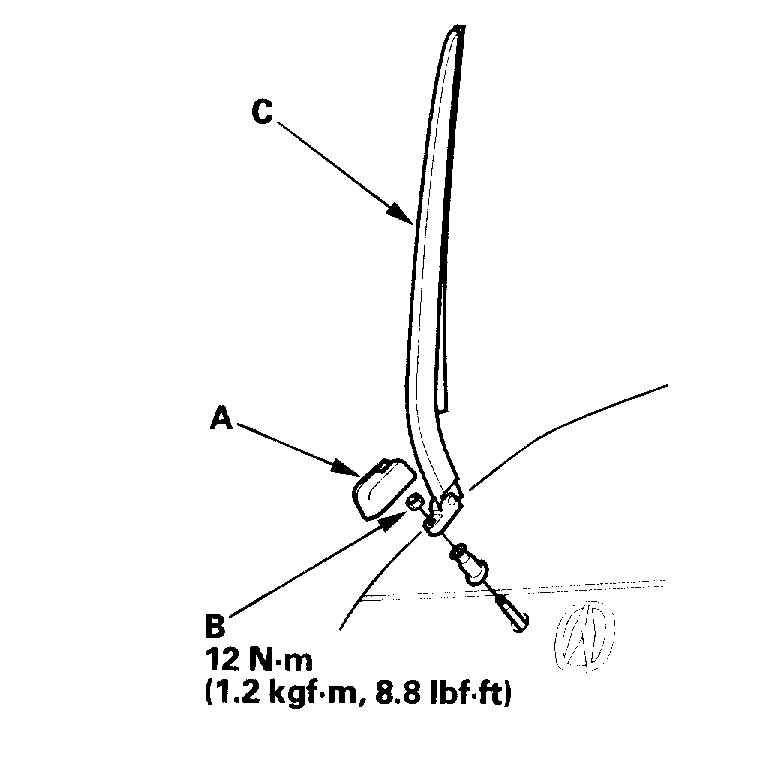 1. Remove the cap (A), mounting nut (B) and rear window wiper arm (C)