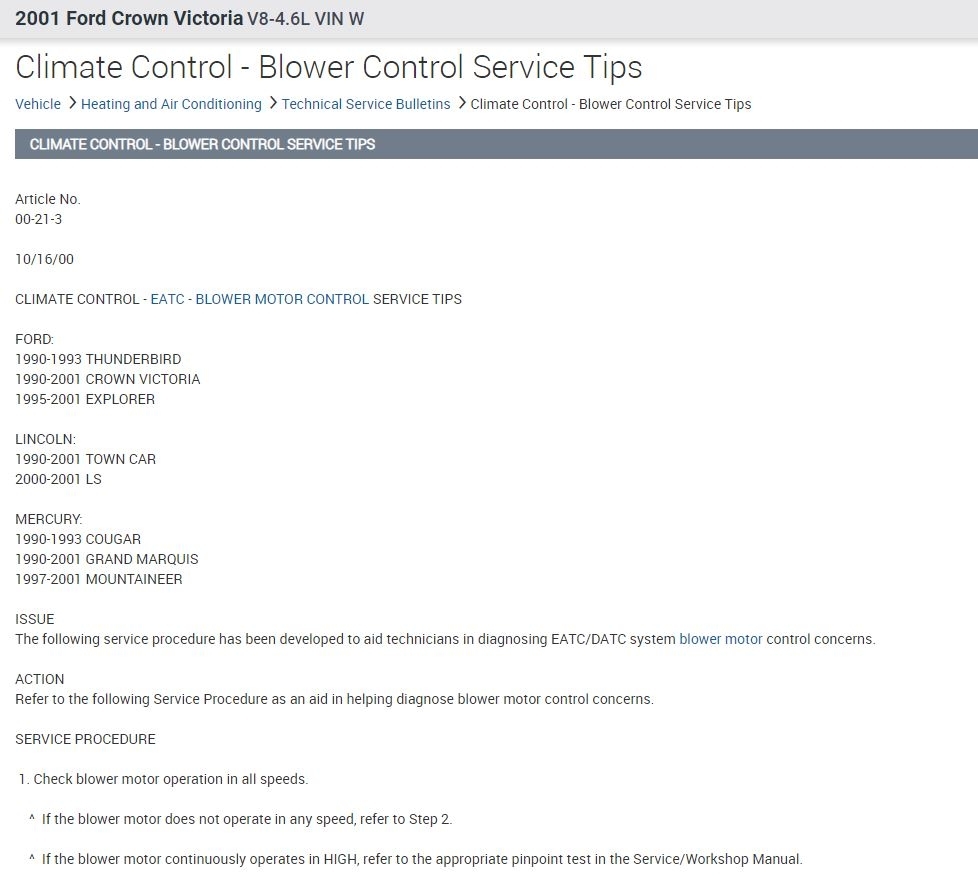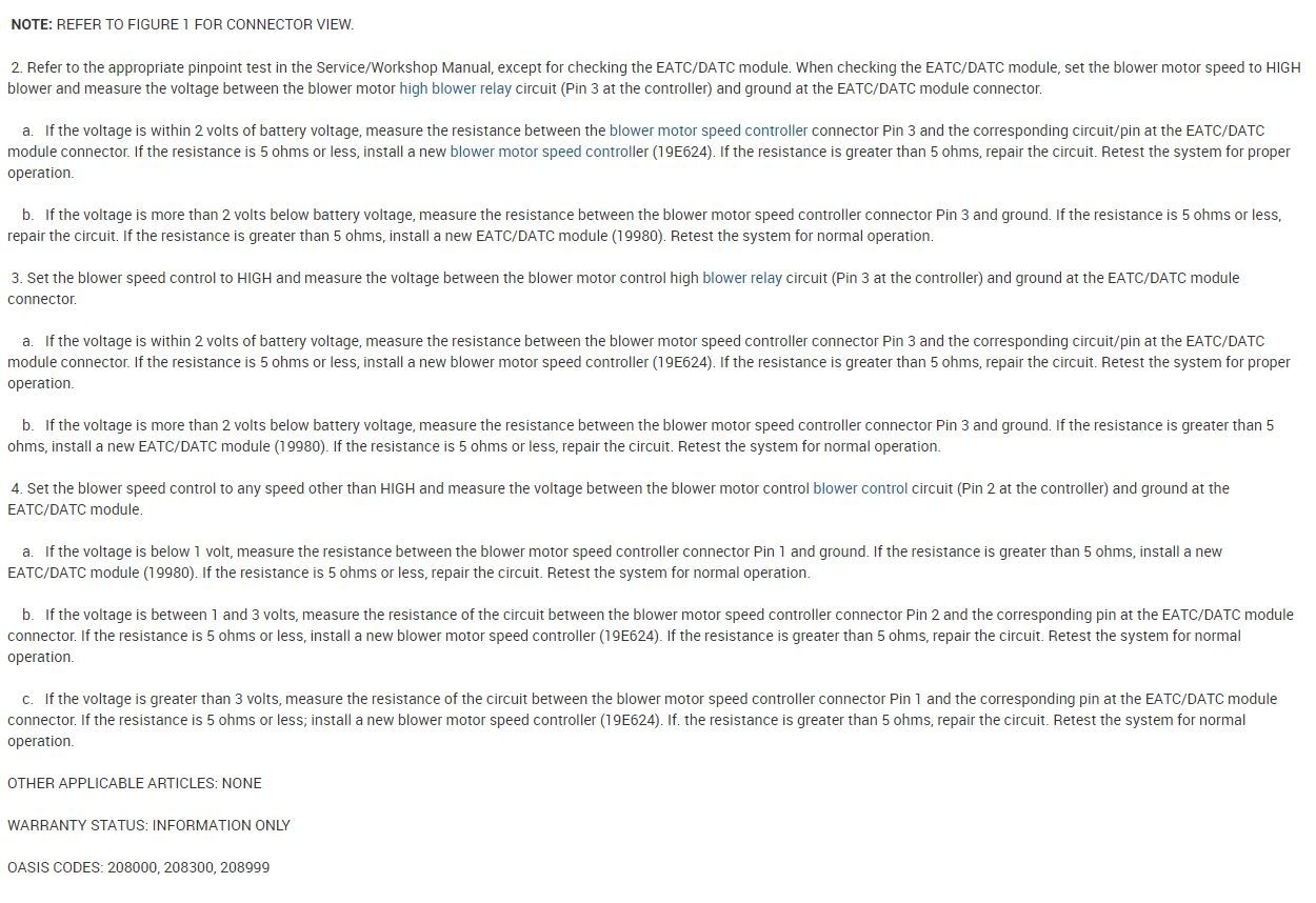 These are clips of a Ford TSB to help with diagnosing Electronic Automatic Temperature Control.