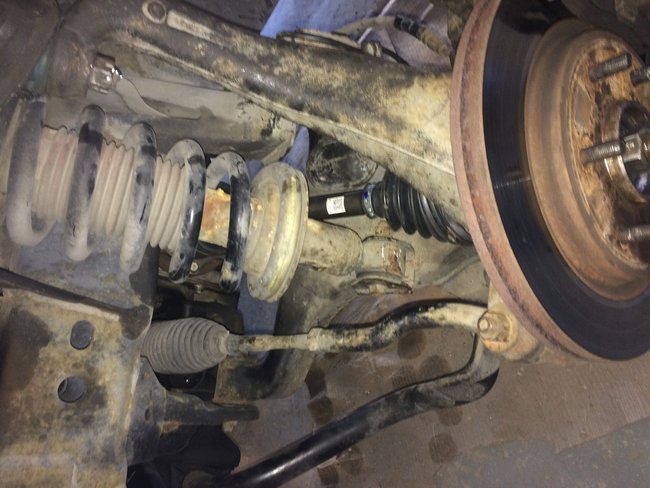 I just replaced my CV axle and it was difficult. Had to remove the shock assembly. When I went to drive it I heard a loud rubber squeal and found out both tires are rubbing the front metal rod not sure what it is.