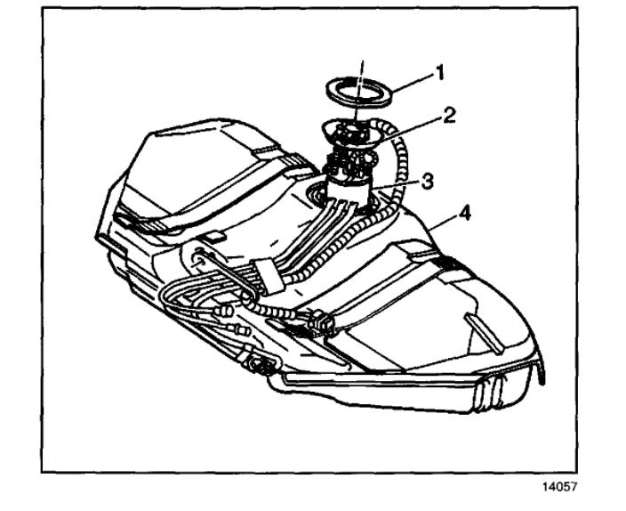 - When removing the modular fuel sender assembly from the fuel tank, be aware that the reservoir bucket is full of fuel. The reservoir must be tipped slightly during removal to avoid damage to the float.