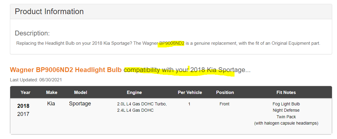My car uses model 9005 headlight bulbs. I want to use Wagner BP9005ND bulbs as replacements but it says they aren't compatible? I have visually compared the bulbs online and don't see an obvious difference to explain why the Night Defense bulbs wouldn't work. Any ideas?
