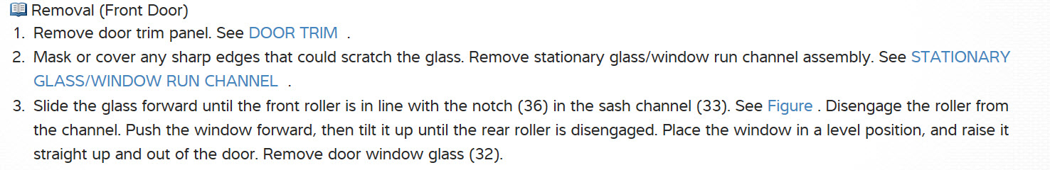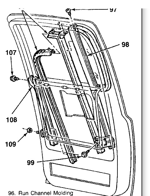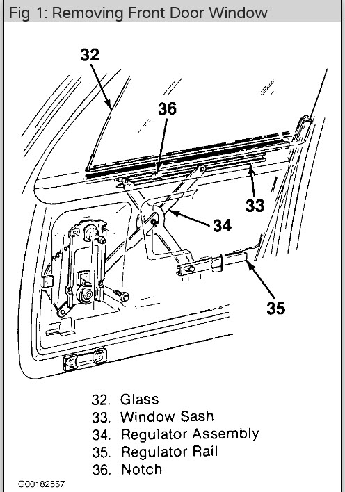 see pictures for removal install is mostly reverse of removal. you can get one from a junkyard probably cheapest. if window has to be glued back into channel use rtv with window rolled up and leave for at least twenty four hours in that position.