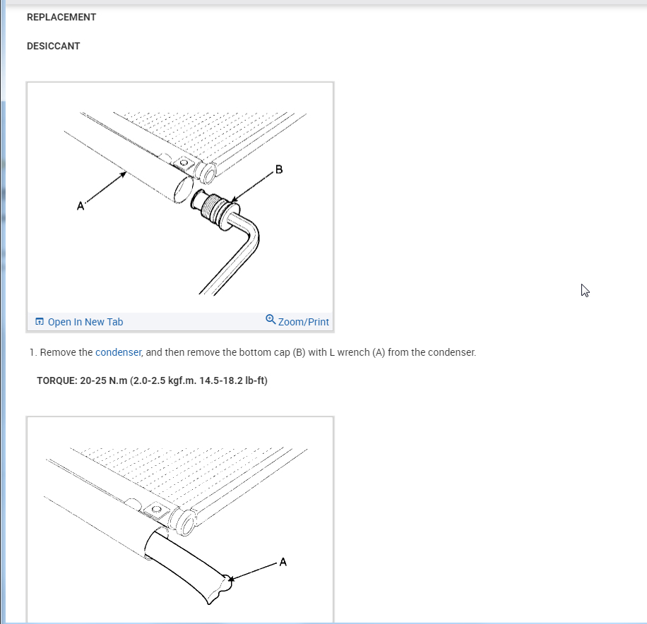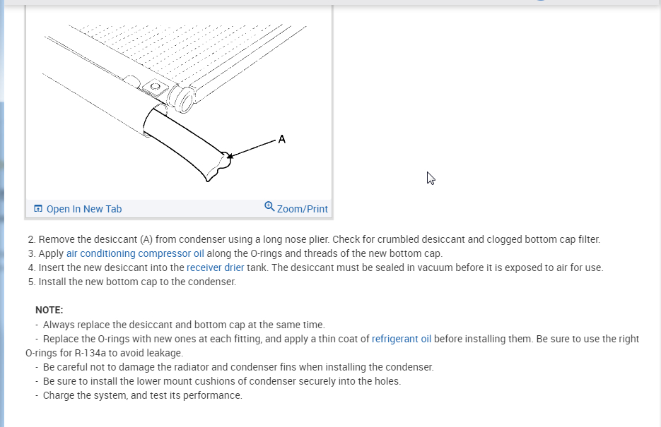 Here is the process for the condenser and desiccant. The new condenser should come with this but just check and make sure.