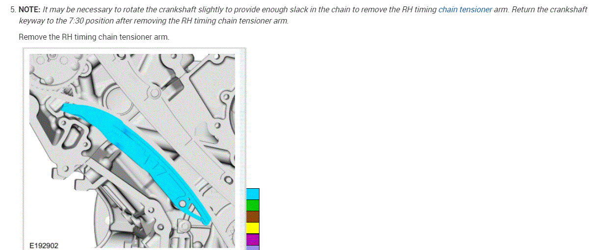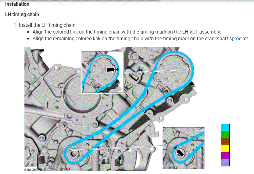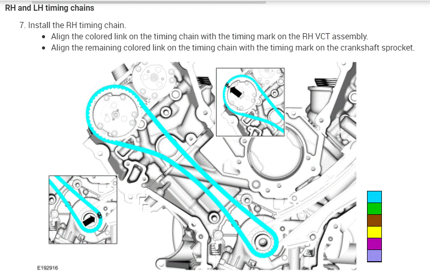 When removing the cam phasers/sprocket. Do the timing marks have to line up with the colored link? I have read the repair manual. It helps and doesn't. Thank you
