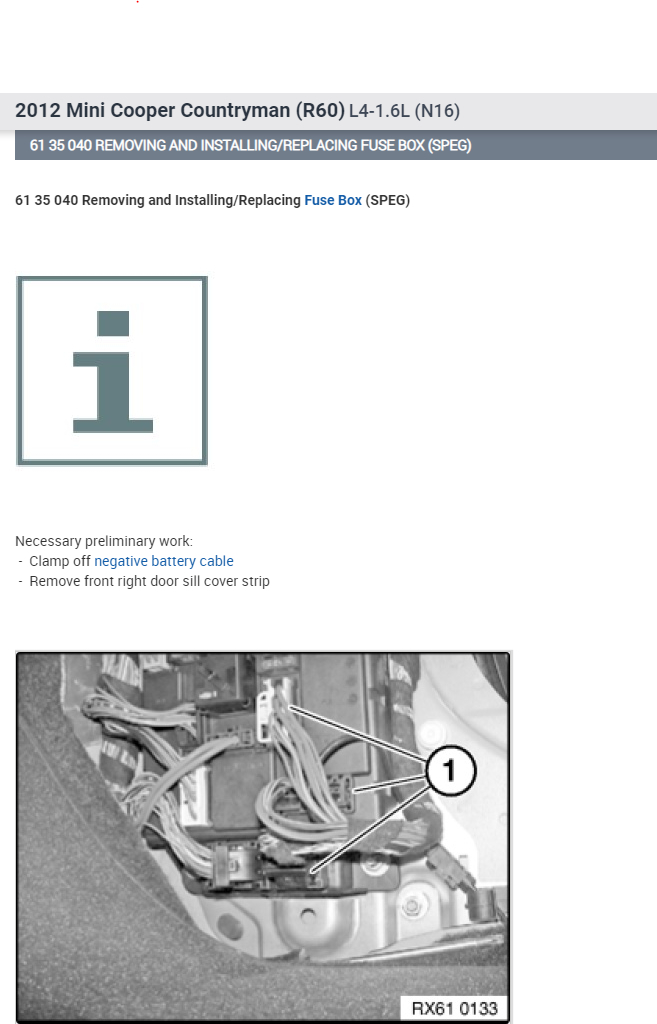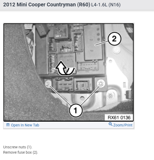 This is a 12-countryman s all4 trim automatic. I need to replace the fuse box on the passenger side behind kick panel. Can you see if you can find instructions? And whether any programming is needed?