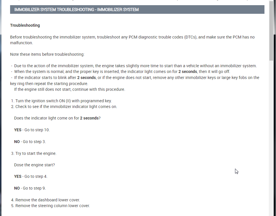 This means we need to run through this testing and find out what the issue is. Also, you could try another key if you have one, just to eliminate a faulty key. Otherwise we need to complete the testing to find out what the issue is.
