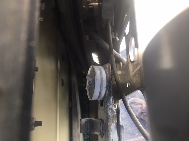 I have removed the door panel, window rubber. All the broken glass has been removed. The replacement panel has two holes in it, where I assume the white plastic bushing that are already on the door track go. I do not know how to remove them to reinstall. They have a flared end on the side facing towards the street. The side closest to me, has a lead washer that spins regardless of whether I have tension on it.