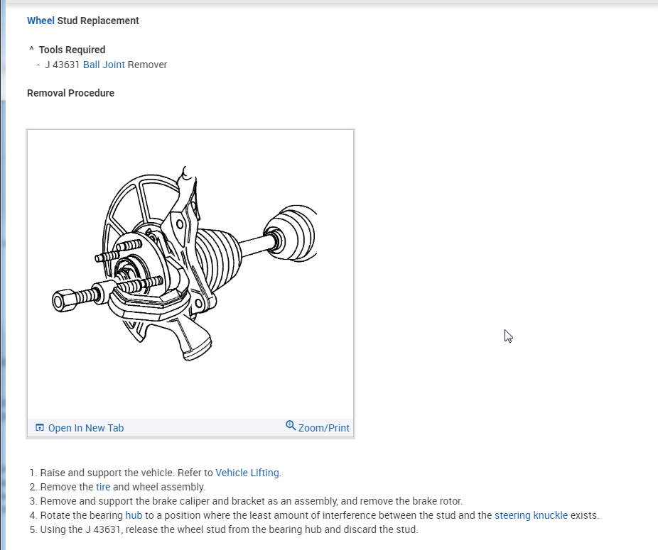I attached the process but also a picture of a new hub. It comes with the studs installed on it already and I see they are only about $30.00. So by the time you buy the studs and replace them it may be worth the extra couple dollars to just replace the hub. It is much easier to just replace the hub which is why I am saying that.