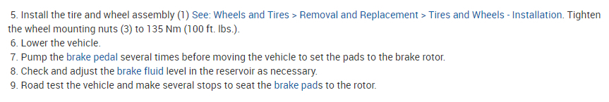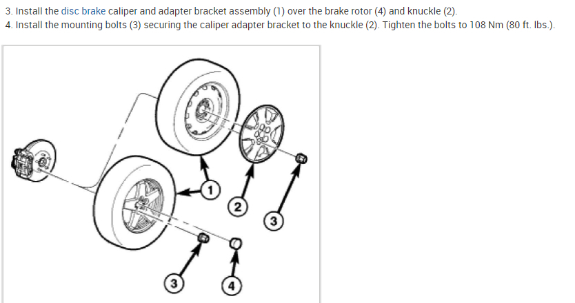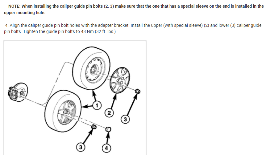 Here is the information you requested. The installation steps also include the torque specifications. This is a tutorial showing what is involved on how to change front brake pads and brake rotors: