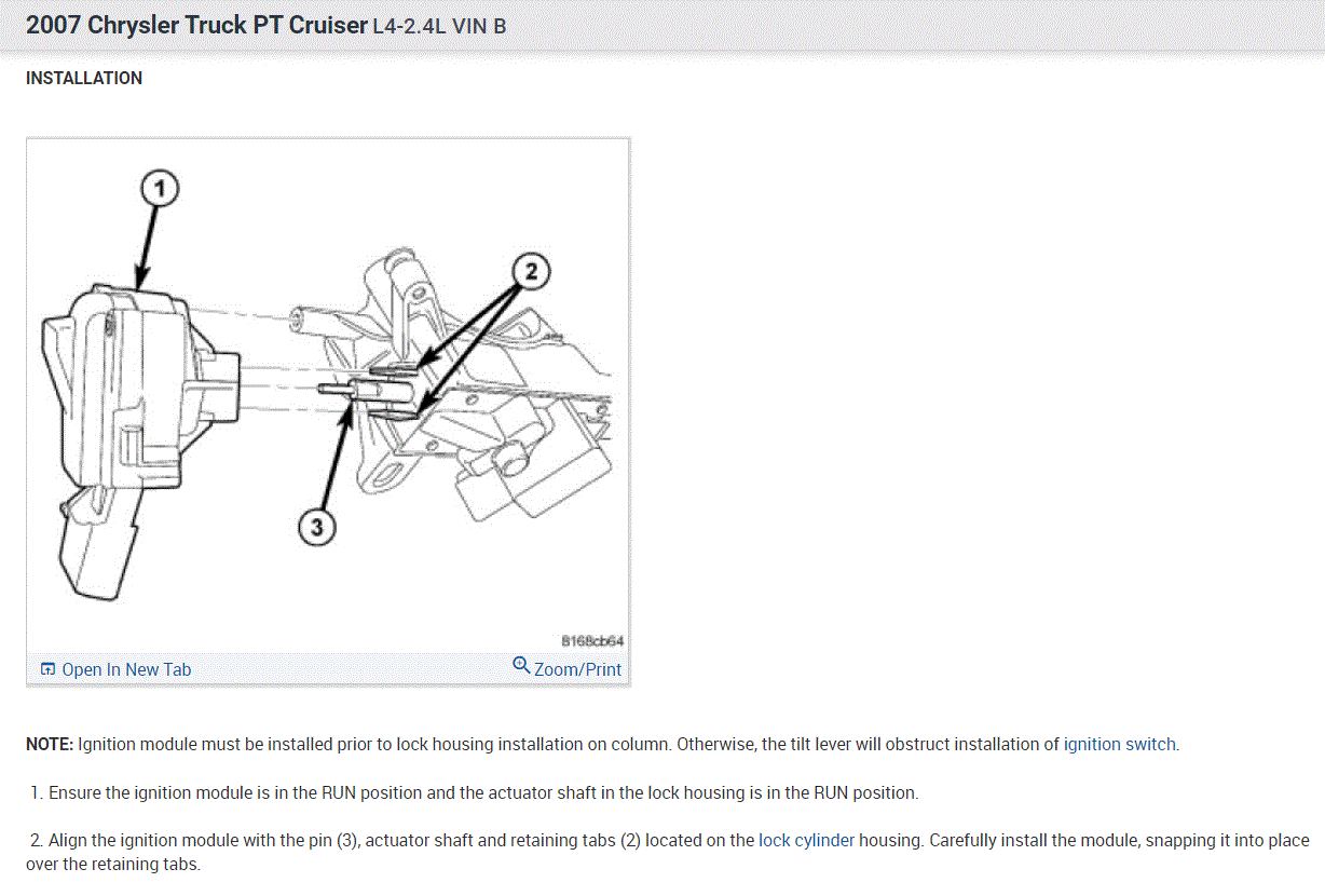 I have the car listed above 2 door convertible. I was having problems with the ignition so i replaced the ignition switch and accidentally broke off the pin of the actuator. now i'm having a heck of a time trying to find out if my car has the actuator as one piece or can it drop down like the 2005 pt cruiser make and models. if you can help me with this i would really appreciate it. thanks