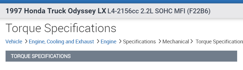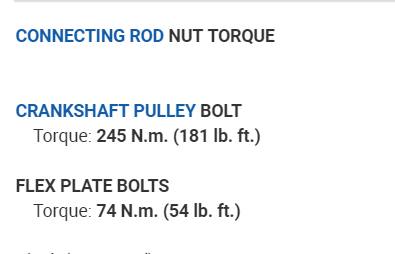 I think you have another question on here where you are talking to Roy about doing a compression test, so I figure you are doing some internal engine work. So, in the diagrams down below I have included a full set of torque specs for your vehicle's engine including exploded diagrams of each component set. Please go through them and get back to us with what you are able to find out.