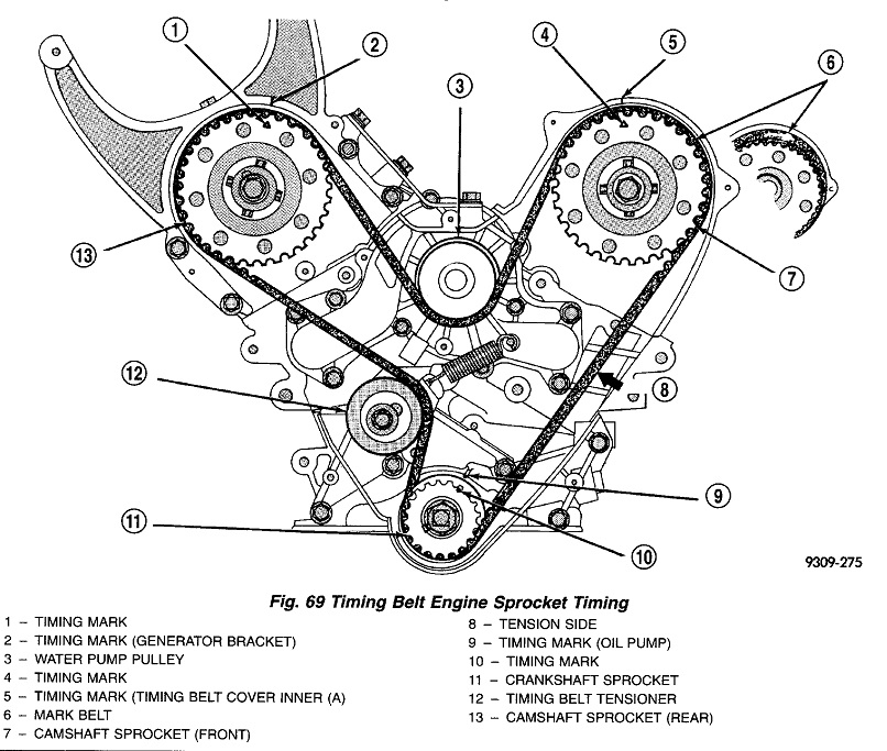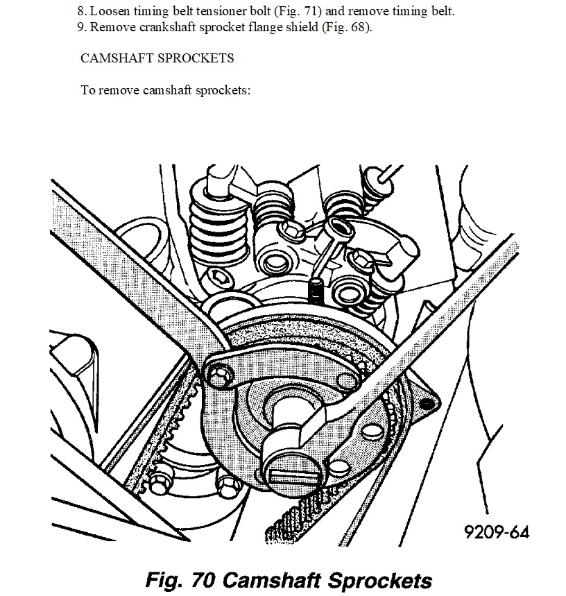 This first drawing shows the timing marks. If you can't blow it up enough to read, let me know and I'll cut it into pieces, then expand them for you. The rest are the instructions for setting the timing. Any belt jumping will have to be done on the two camshaft sprockets. There's a lip under the crankshaft sprocket that prevents the belt from being able to jump a tooth there.
