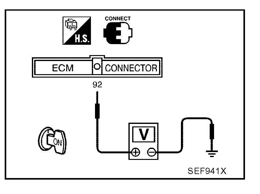 7. Check voltage between ECM terminal 92 (Throttle position sensor signal) and ground under the given conditions.