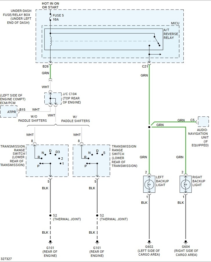 Now IF it were mine and it turned out to be the relay was bad, I would look at bypassing it using an external relay. You would connect a 4 pin relay up using a switched power to terminals 86 and 30. Then a lead from pin 8 on the transmission switch to terminal 85 and the lead out to the lights on terminal 87 similar to the last image.