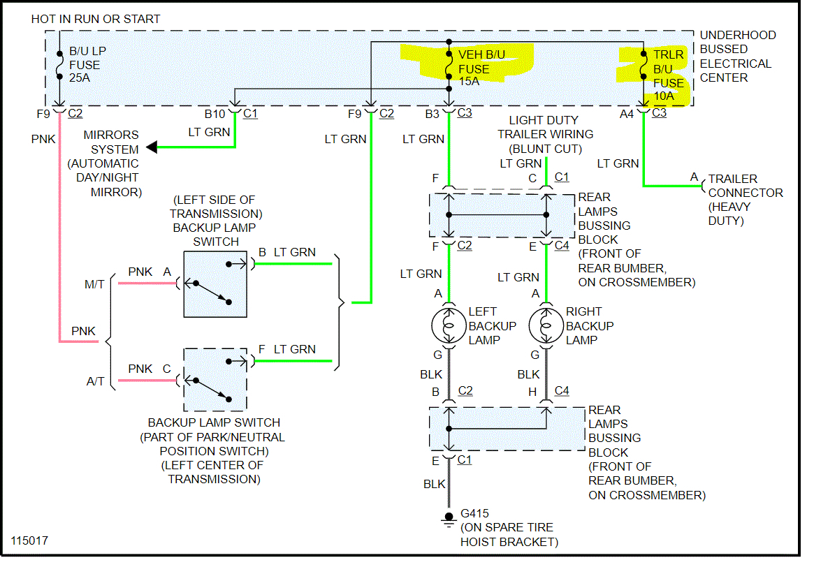 Do me a favor. First, I attached the wiring schematic below for the backup lights. I want you to pull the 15 amp backup fuse. See if the lights go off.
