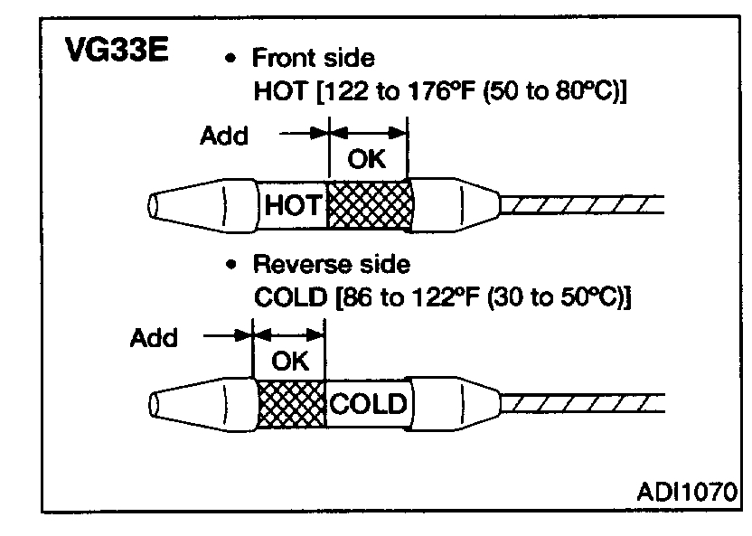 5. Re-check fluid level at fluid temperatures of 50 to 80 °C (122 to 176 °F) using "HOT" range on dipstick.